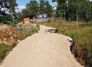 Ved den nedlagte skytebanen i Sætre, har dugnadsgruppa bygd opp en gapahuk, som utgjør et fint turmål i området. Vi har bistått dem med en trillesti som gjør området mer tilgjengelig for allmenheten og planering av området ved gapahuken.